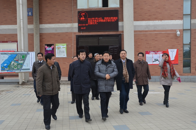 1月7日上午,副省长谢广祥来我院新芜校区和文津校区考察。省教育厅副厅长李和平,芜湖市副市长詹云超,科大讯飞公司董事长刘庆峰,安徽工程大学校长干洪,科大讯飞常务副总裁陈涛,安徽工程大学副校长、机电学院院长李震等陪同考察。
