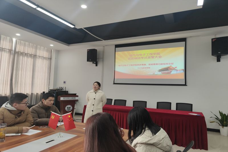 为持续推动学生党员网格化建设,强化学生党员的先锋模范作用,展示学生党员形象,强化学风建设,严肃考风考纪,营造出“好学、乐学、笃学”的学习氛围,电气与电子工程学院“砥砺青春”功能型党支部近日联合“筑梦青春”功能型党支部开展学生党员“亮身份、树形象、做表率”诚信考试活动,充分发挥学生党员的先锋模范作用,以党风促学风,营造诚信考试的良好氛围。(图为“筑梦青春”功能型党支部书记卢丽娟主持会议)(图为“砥砺青春”功能型党支部书记余欢欢主持会议)活动伊始,“筑梦青春”功能型党支部书记卢丽娟对全体党员进行诚信考试教育。她强调考试作弊的相关校规校纪以及党规党纪处理意见。通过讲真实作弊案例对全体党员进行反面警示教育,告诫全体党员不要为了一时的“好”成绩影响将来的一生,一定要守住“诚信考试”这一红色底线,堂堂正正做人,发挥好党员模范带头作用。“砥砺青春”功能型党支部书记余欢欢要求全体党员在考试中佩戴党员徽章亮明党员身份,自觉接收监考老师和同学们的监督,发挥带头模范作用,诚信对待每一场考试,考出真实水平,弘扬
