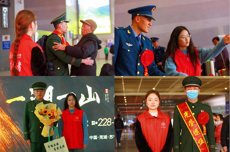 本网讯 春“锋”三月暖民心,今年3月5日是第24个“中国青年志愿者服务日”,也是全国第61个“学雷锋纪念日”。近日,管理工程学院党总支坚持“党建带团建、团建促党建”联合学院各学生党支部、各团支部开展“党团共建聚力量,雷锋精神志愿行”等系列“学雷锋”主题活动和“志愿行”服务活动,引导学院党团青年用实际行动践行志愿服务精神,掀起“学雷锋”热潮。凝聚青春力量,传承使命担当昔日从军报国,今朝荣归故里。近日,学院学生第一党支部党员、财管2104团支部成员携手老营房志愿服务队,在芜湖站联合芜湖市退役军人事务局,开展了退役军人回乡接站志愿服务活动。“欢迎战友光荣返乡!”当2024年春季返乡的退役军人陆续到达时,志愿者们立即上前迎接,为他们戴红花、佩绶带、送鲜花,送上“政策包”,还细心讲解芜湖市关于退役军人的退伍政策,提醒退伍军人扫码加入官方群聊,了解退役办事服务流程,帮助他们尽快转变角色、适应家乡。这次的主题党日活动,让青年学生能够0距离感知爱国主义的魅力与温度。(图为志愿者引导退伍军人及合影)学雷锋